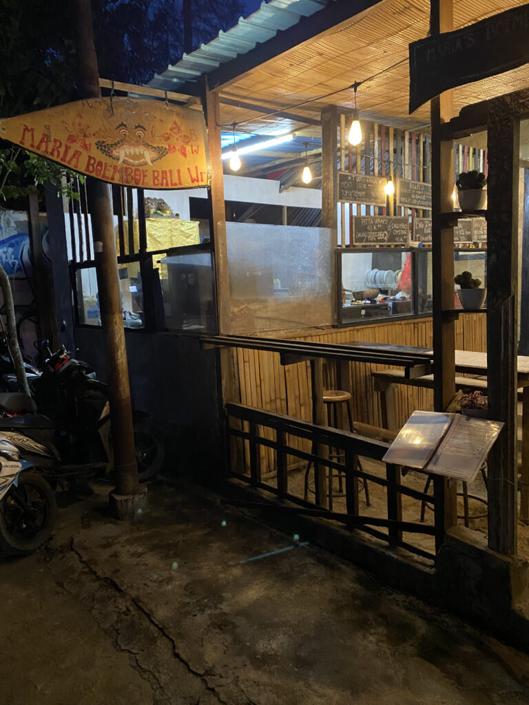 Wir haben dieses Gericht auf unserer Reise durch Bali, in einem kleinen Warung auf der Insel Nusa Lembongan entdeckt. Der Warung hiess «Maria Boemboe Bali» und dieses Auberginengericht war wahrscheinlich eine Spezialität des Hauses, da es auf der Speisekarte mit «Aubergin Boemboe Bali» angeschrieben war.