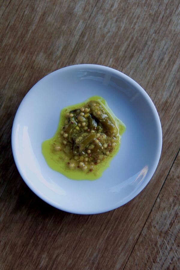 Zutaten: Apfelessig, grüne Chilis (24.6%), Rapsöl, Senfsamen gelb & schwarz (6.2%), Zwiebeln, Salz, Knoblauch, Ingwer, Gewürze